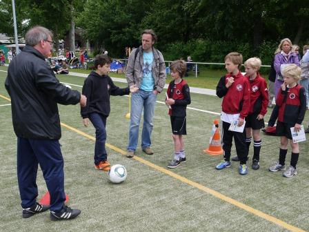 Die Fußballabteilung bot unter Federführung von Bianca Brunssen und Detlef Radeloff mit Unterstützung vieler Trainer und älterer Spieler die Möglichkeit, das DFB-Fußballabzeichen zu erwerben. Über 100 Fußballbegeisterte stellten sich erfolgreich dieser Herausforderung und sammelten an den 5 Stationen ausreichend viele Punkte beim Dribbeln, Passen, Flanken, Schießen und Köpfen. Die höchste Teilnahmequote erreichte dabei die 2. F-Jugend (Jg. 2004), die sich damit über einen vom DSV-Vorstand ausgelobten Teilnahmepreis freuen darf. Neben dem Fußballabzeichen-Parcours erfreute sich auch die vom Hoisbüttler SV zur Verfügung gestellte Schußgeschwindigkeits-Messanlage großer Beliebtheit, und wer danach noch nicht genug hatte, konnte noch ein Partie Beach-Soccer absolvieren.